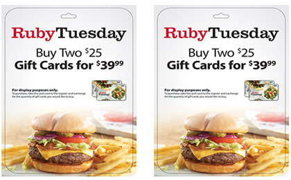 Hurry! Right now, BJ’s club members can get two $25 Ruby Tuesday Gift Cards for only $39.99! That’s $50 in gift cards and a $10 savings! These are running out fast so if you want this, don’t wait! Shipping is free from BJ’s.