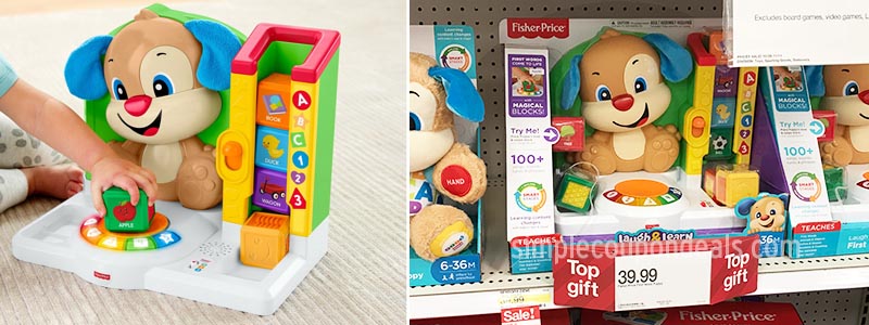 Thru early 12/7 only, snag the Fisher-Price Laugh & Learn First Words Smart Puppy for only $28.49. Originally $40, it’s now on sale for $29.99. The smart puppy teaches first words with fun songs, sounds, phrases, and exciting hands-on activities! When babies swipe each block across the magical reader, they’ll hear sounds, phrases, and objects. The puppy also lights up and plays music to entertain babies. Shipping is FREE from Target.